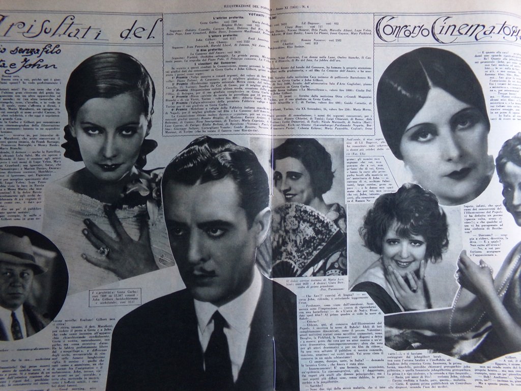 I risultati del concorso cinematografico: Greta Garbo, John Gilbert, Brigitte Helm