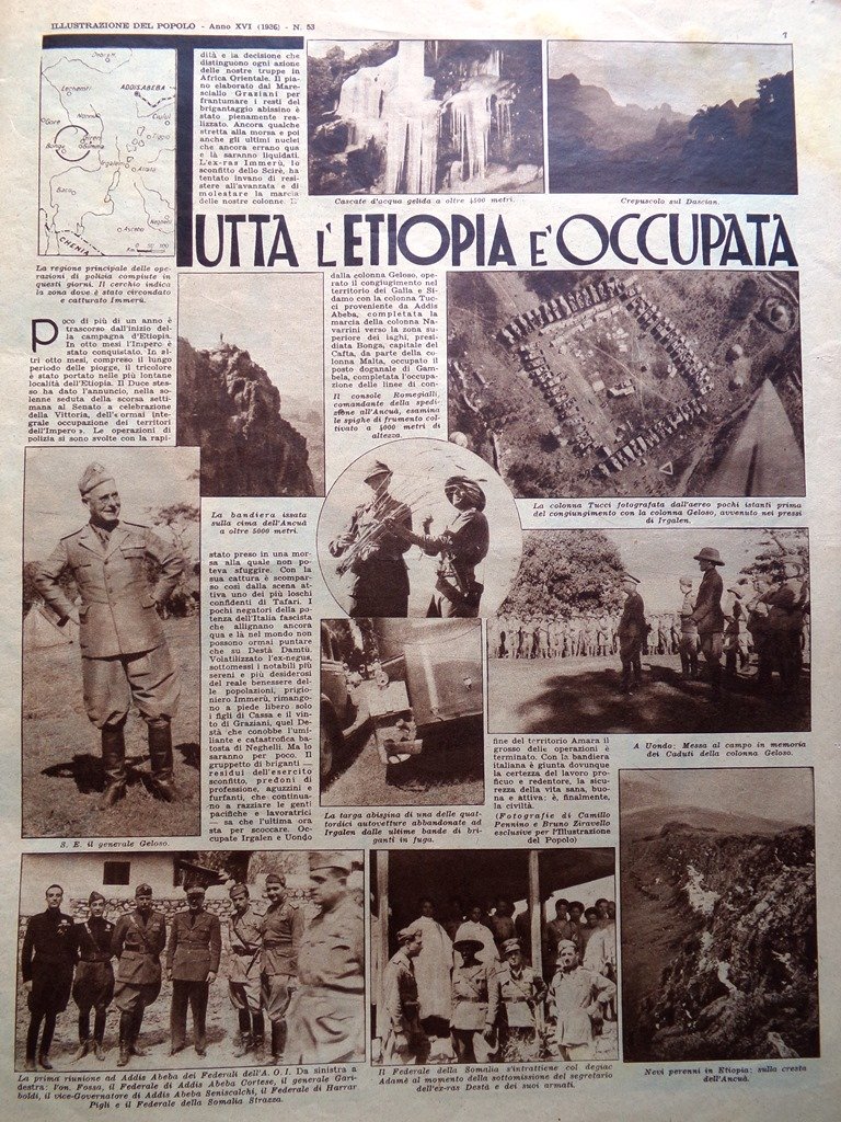 Dopo la cattura di Ras Immirù - caduto nelle mani della colonna Malta il capo abissino già sconfitto nello Scirè, le nostre truppe progredirono rapidamente nelle regioni occidentali dell'Etiopia fino al posto doganale di Gambelka, dove fu issato il tricolore. L'aviazione cooperò efficacemente all'avanzata, precedendo a volte le più veloci puntate delle fanterie col lancio di squadre di arditi paracadutisti (E. Mainetti)