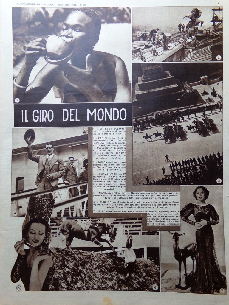 Il giro del mondo: una parata sulla piazza rossa a Mosca, Fay Wray, Peggy Byrne, Primo Carnera a New York