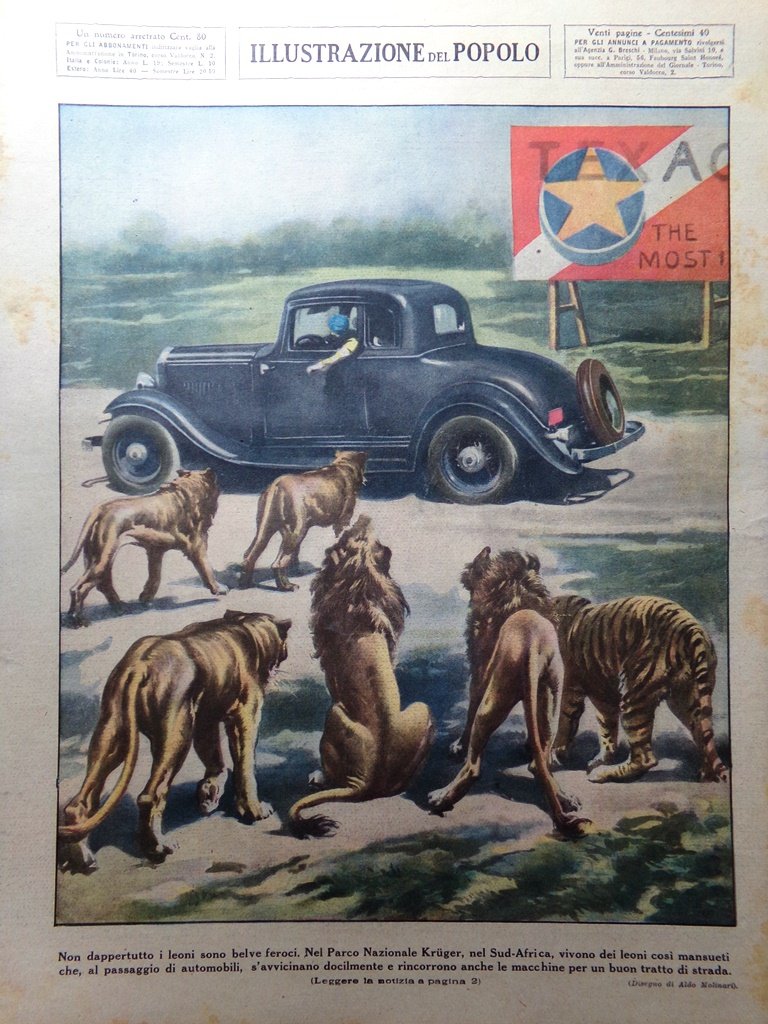 Non dappertutto i leoni sono belve feroci. Nel Parco Nazionale Kruger, nel Sud-Africa, vivono dei leoni così mansueti che, al passaggio di automobili, s'avvicinano docilmente e rincorrono anche le macchine per un buon tratto di strada (Aldo Molinari)