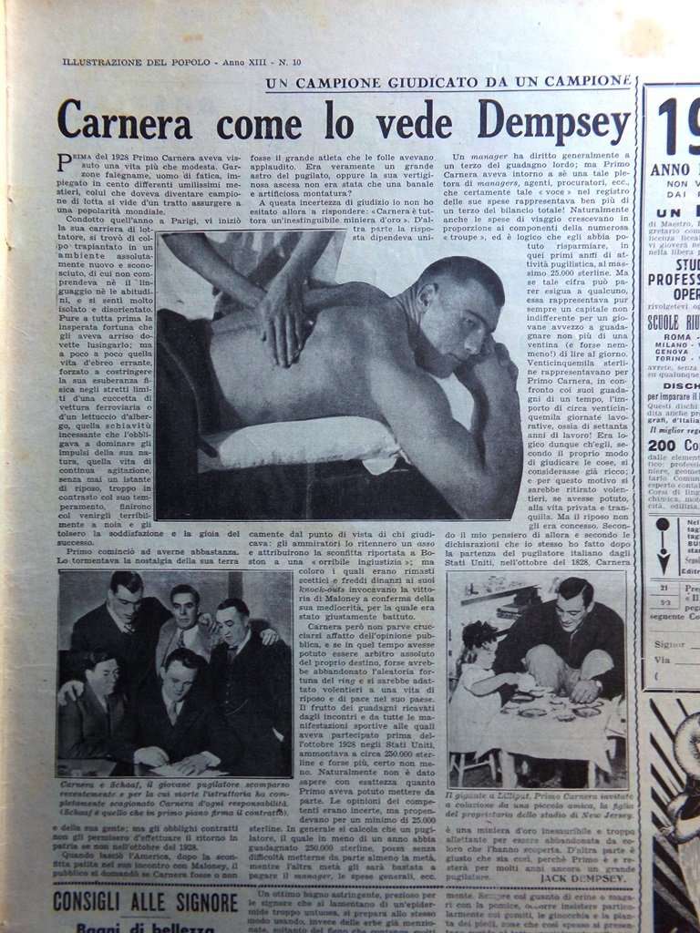 Illustrazione del Popolo 5 Marzo 1933 Carnera Dempsey Giornalismo Foro Traiano