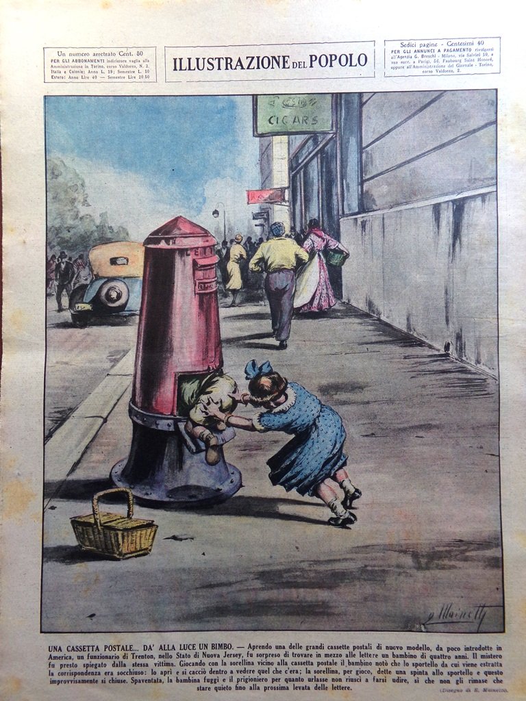 Aprendo una delle grandi cassette postali di nuovo modello, da poco introdotte in America, un funzionario di Trenton, allo stato di New Jersey, fu sorpreso di trovare in mezzo alle lettere un bambino di quattro anni. Il mistero fu presto spiegato dalla stessa vittima. Giocando con la sorellina vicino alla cassetta postale, il bambino notò che lo sportello da cui viene estratta la corrispondenza era socchiuso: lo aprì e si cacciò dentro a vedere quel che c'era; la sorellina, per gioco, dette una spinta allo sportello e questo improvvisamente si chiude. Spaventata la bambina fuggì e il prigioniero per quanto urlasse non riuscì a farsi udire, sì che non gli rimase che stare quieto fino alla prossima levata delle lettere (E. Mainetti)