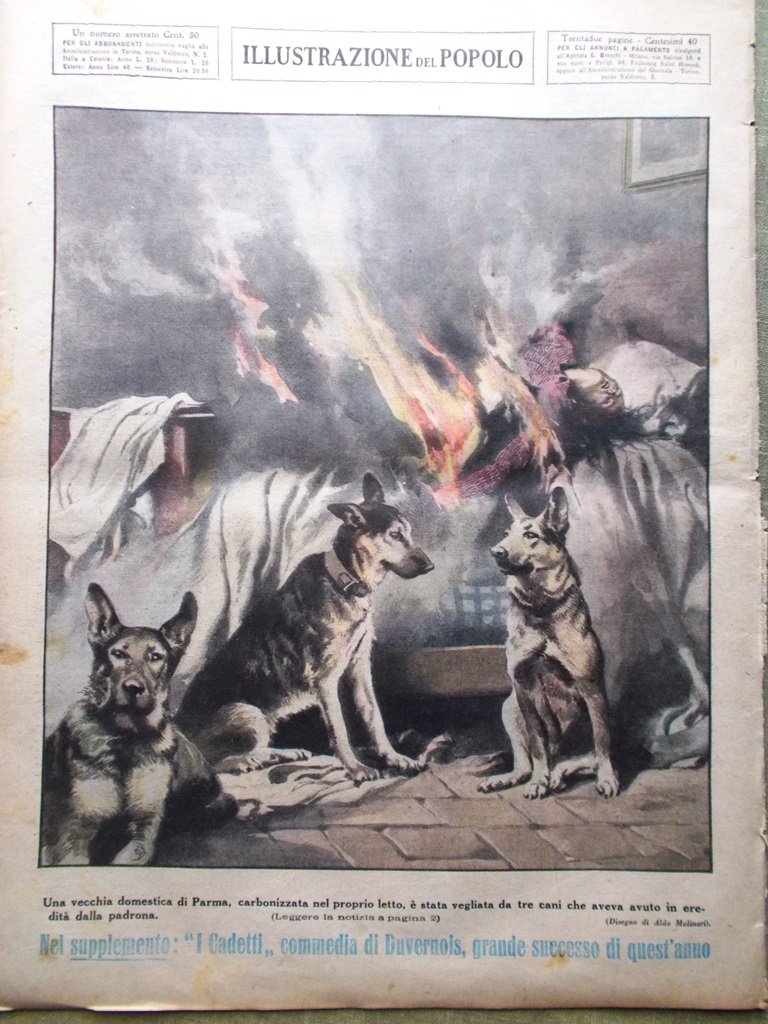 Una vecchia domestica di Parma, carbonizzata nel proprio letto, è stata vegliata da tre cani che aveva avuto in eredità dalla padrona (Aldo Molinari)