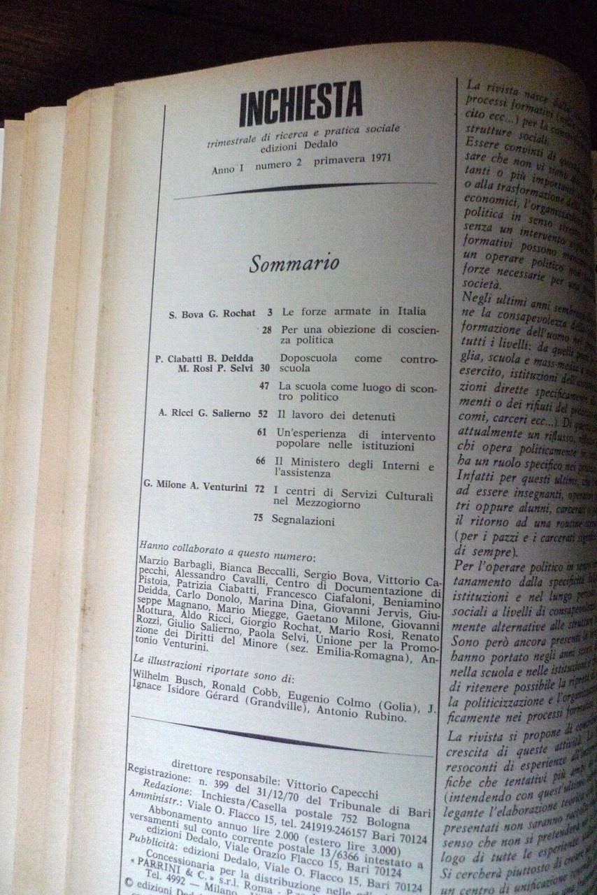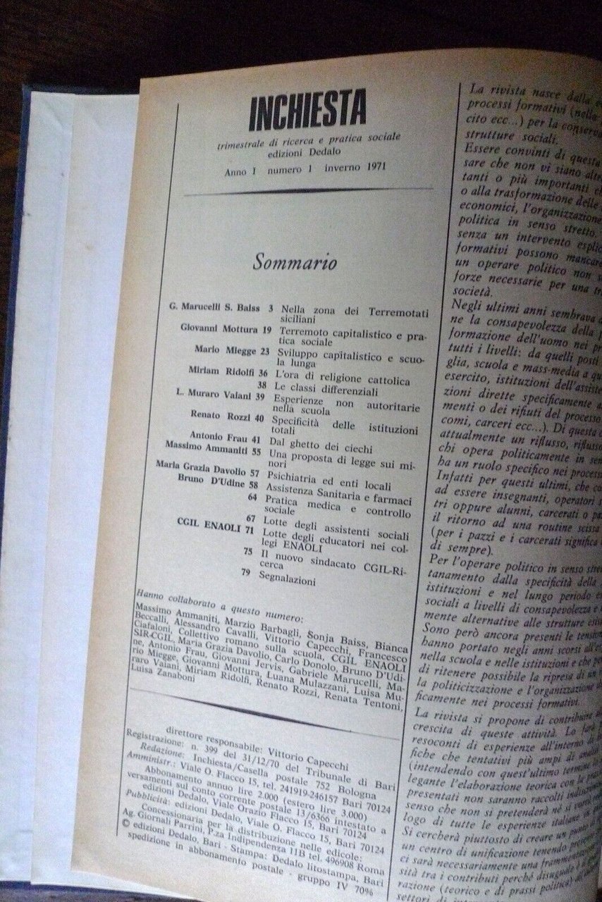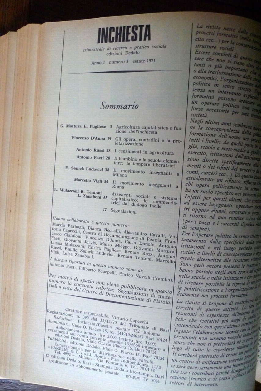INCHIESTA.Rivista trimestrale di ricerca e pratica sociale.Annata 1971-72,Dedalo