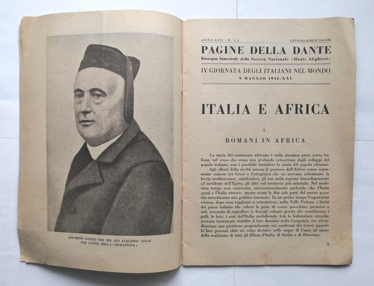 ITALIA E AFRICA rivista società nazionale Dante Alighieri 1943 Italiani nel mond