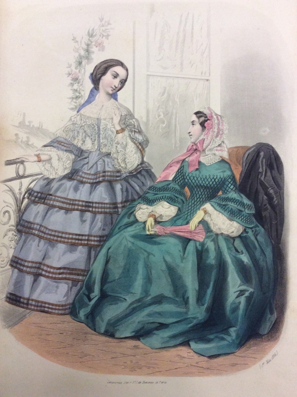 In-8 gr. (mm. 255x165), t. tela coeva, titolo oro al dorso, pp. 380, molto ben illustrato da 11 (su 12) tavole fuori testo in cromolitografia (di cui 2 in bianco e nero) relative a figurini di moda: vi sono raffigurate toilettes per donne e bambini, di uso corrente e per le grandi occasioni. Raccolta di 12 numeri di questa rivista dedicata all'educazione, all'istruzione e alla moda giovanile, dal novembre 1855 all'ottobre 1856.Ben conservato.