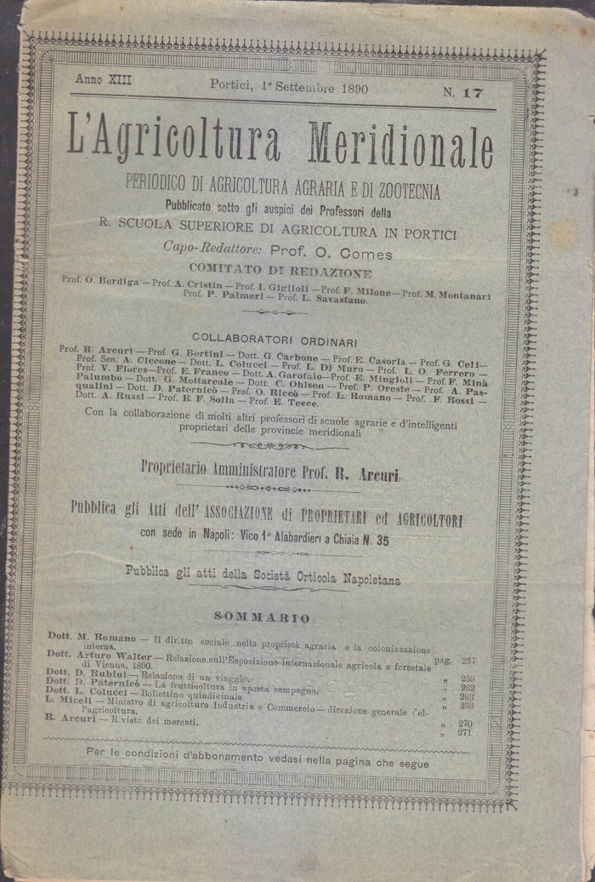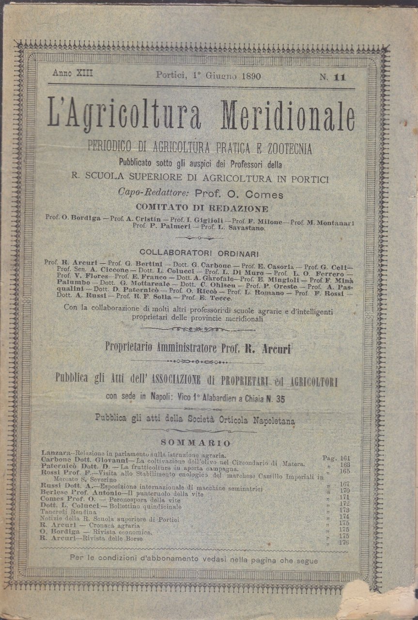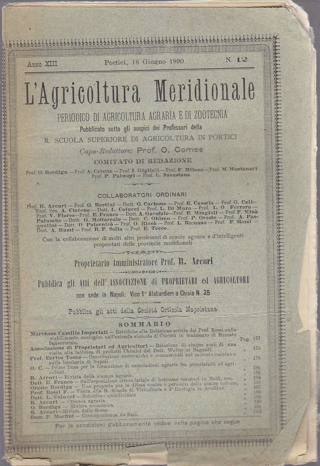 L'AGRICOLTURA MERIDIONALE. Anno XIII numeri 2, 4, 5, 9, 10, 11, 12, 13, 14, 15, 17, 18, 20, 21, 24,.