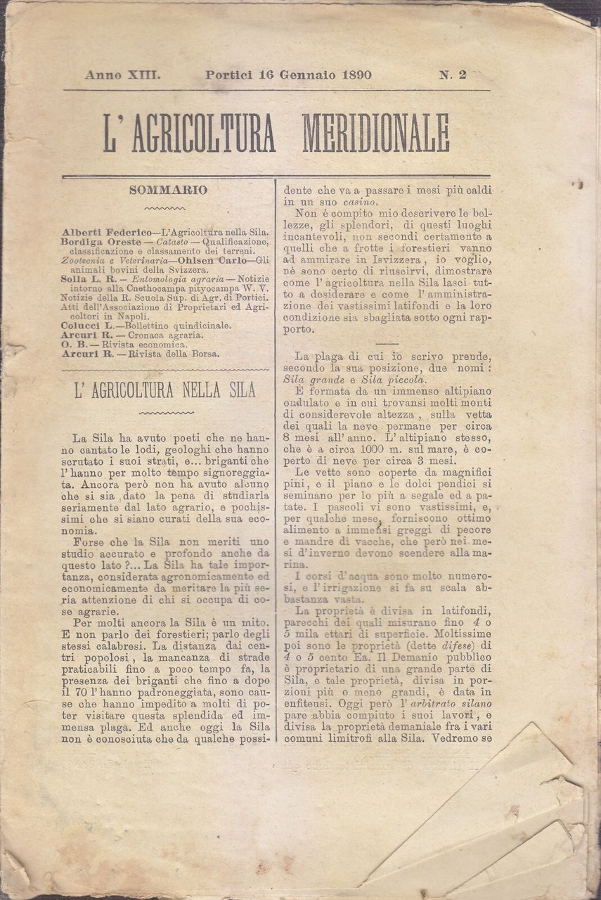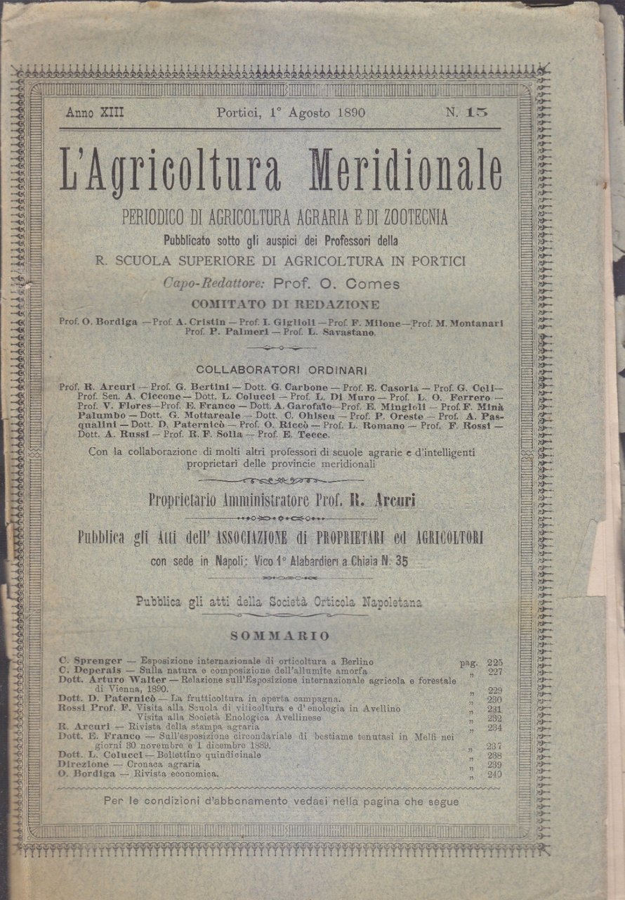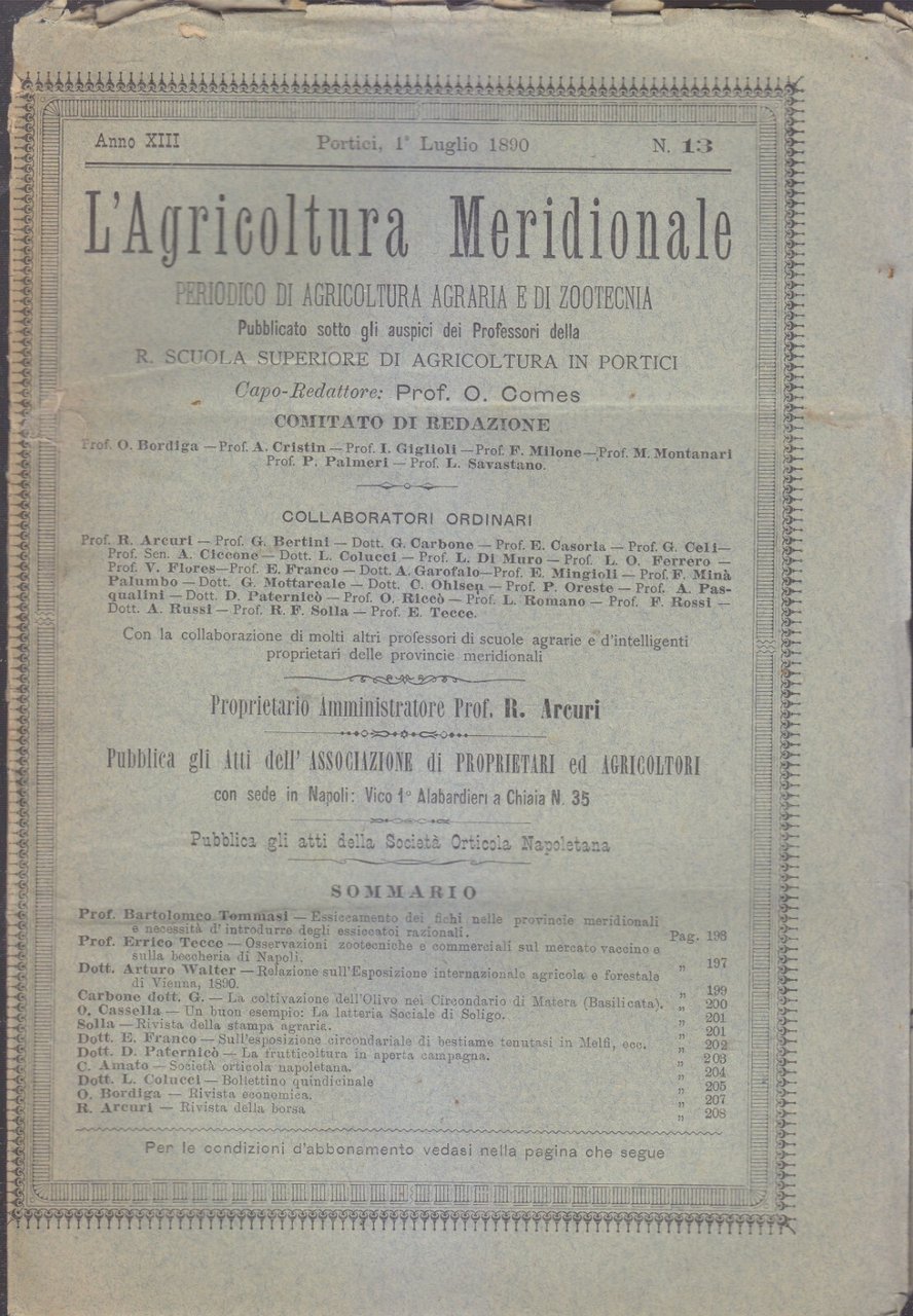 L'AGRICOLTURA MERIDIONALE. Anno XIII numeri 2, 4, 5, 9, 10, 11, 12, 13, 14, 15, 17, 18, 20, 21, 24,.