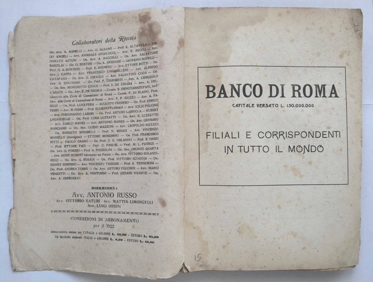 166 pagine (numerazione da 515 a 680). Articoli di Paolo Orano, Benito Mussolini, Antonio Russo, ecc. Copertina editoriale in brossura. Stato di conservazione: discreto buono (pagine ingiallite, gore d'umido, copertina fortemente sciupata)