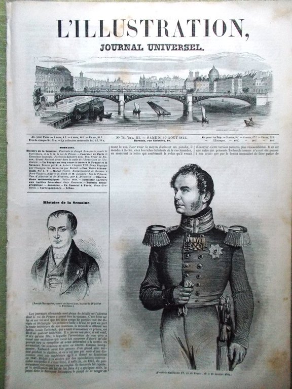 L'Illustration Journal Universel 10 Aout 1844 Joseph Bonaparte Orléans Sucre Roi