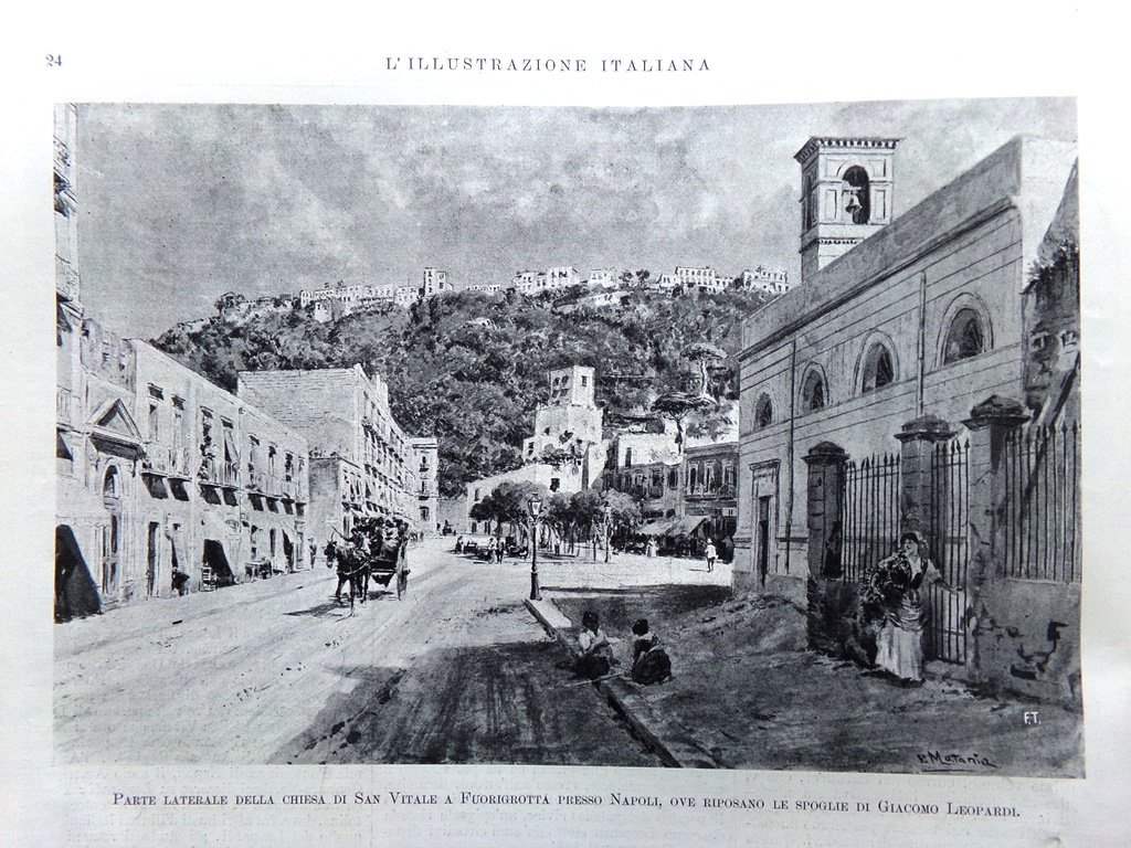 Le feste Leopardiane: parte laterale della chiesa di San Vitale a Fuorigrotta presso Napoli (E. Matania)