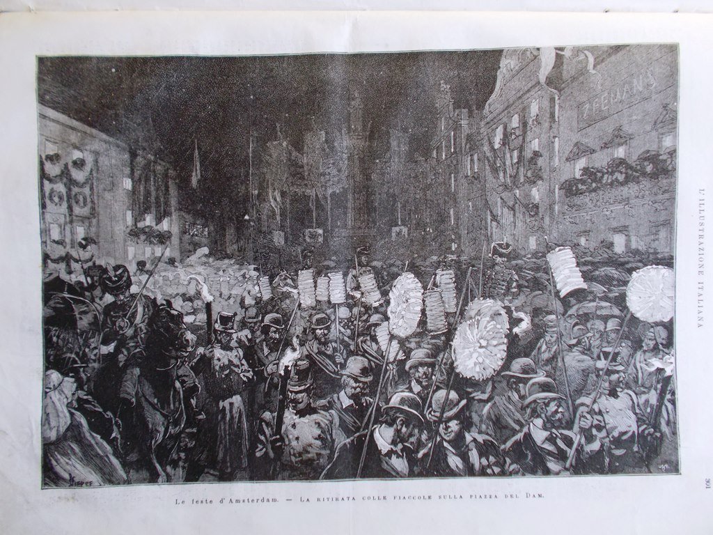 Le feste di Amsterdam: la ritirata colle fiaccole sulla piazza del Dam (Stampa)