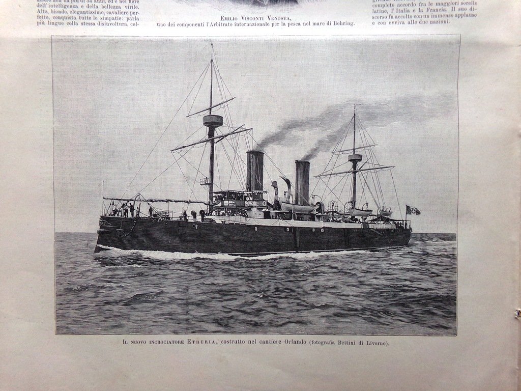 Il nuovo incrociatore Etruria costruito nel cantiere Orlando