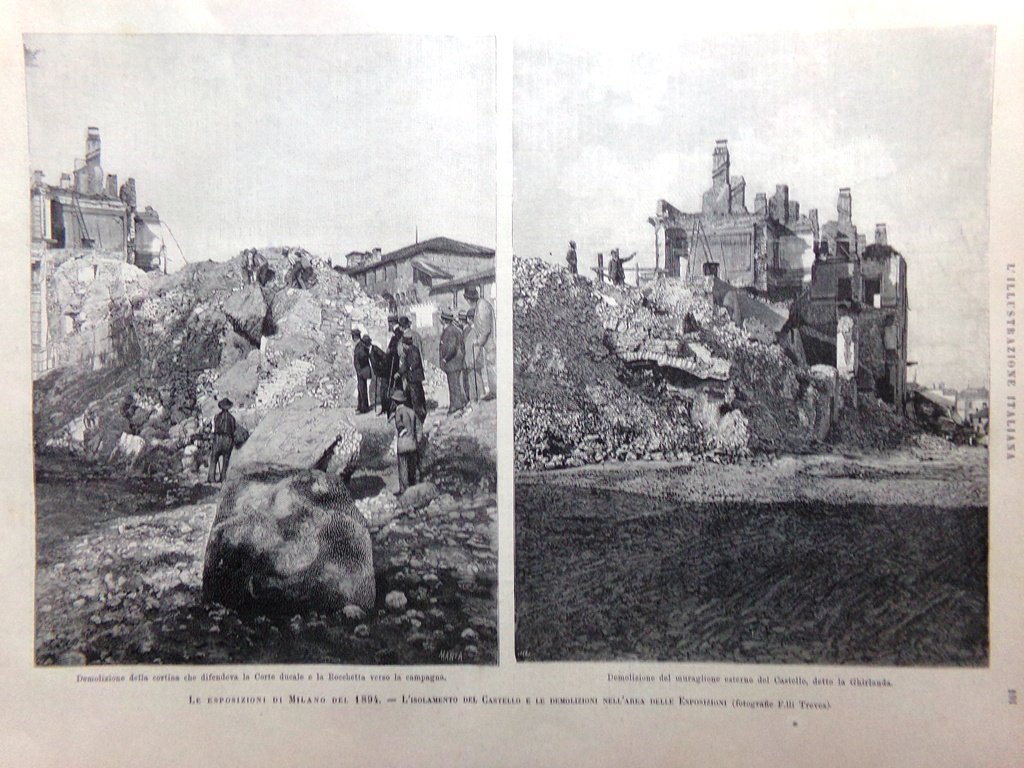 Le esposizioni di Milano del 1894: l'isolamento del Castello e le demolizioni nell'area delle esposizioni (diverse stampe)