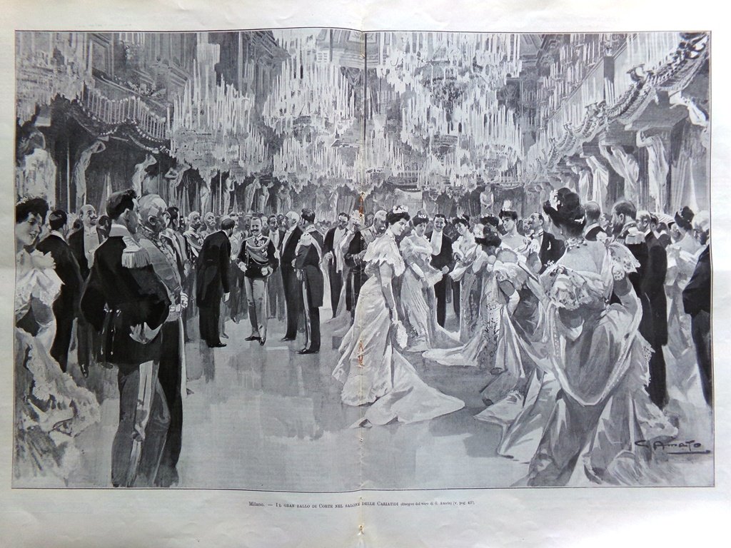 Milano: il gran ballo di corte nel salone delle Cariatidi (G. Amato) (stampa in 2 pagine)