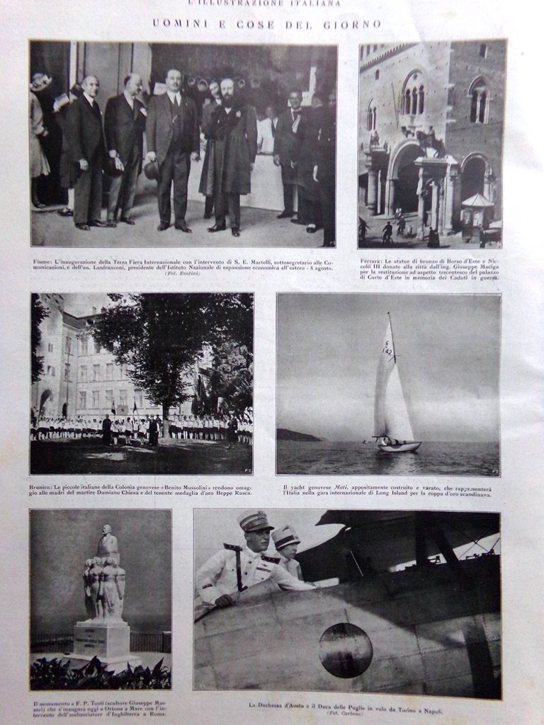 L'Illustrazione Italiana 14 Agosto 1927 Fuad Arte a Monza Maiorca Fiume Spiagge
