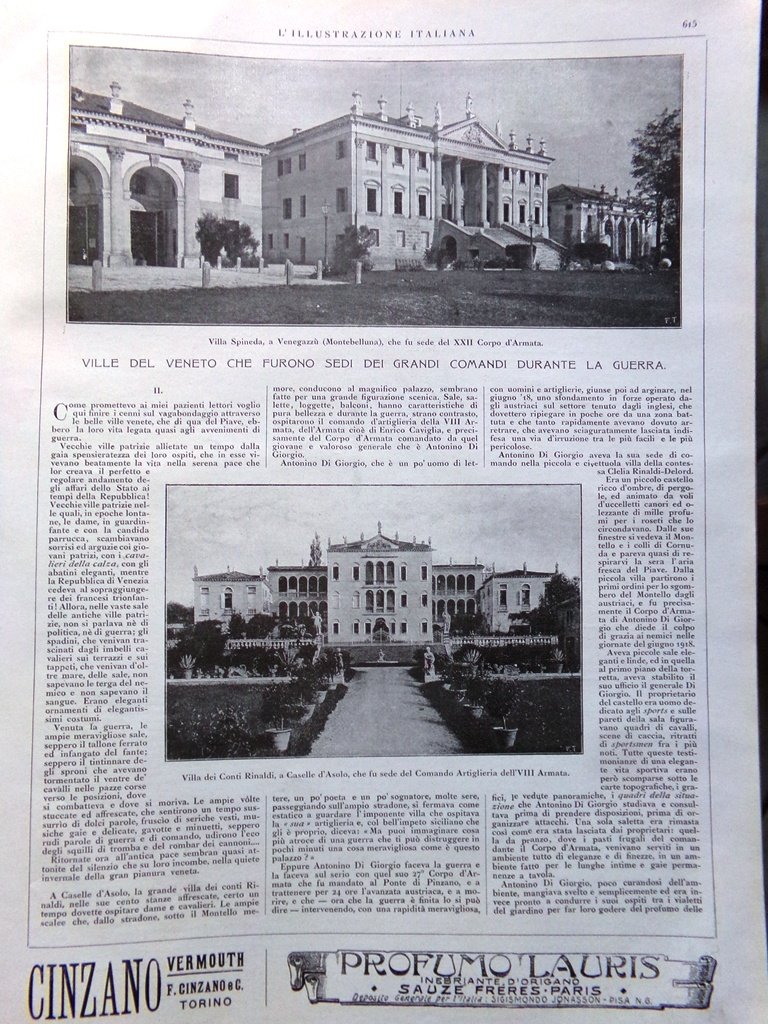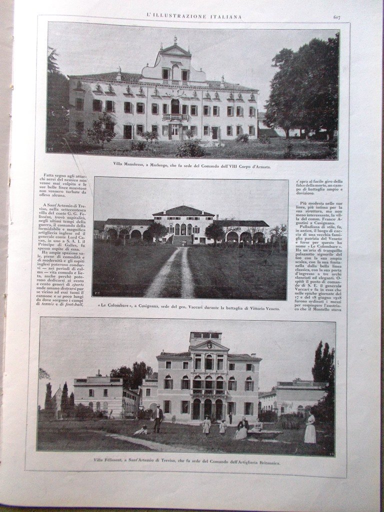 Ville del veneto che furono sedi dei grandi comandi durante la guerra: Manolesso a Marlengo, Colombare a Cusignana, Felissent a Sant'Artemio di Treviso, Dell'Orso a Treviso, Rinaldi-Delord a Caselle d'Asolo, Scaroni a Breganze, Ninni a Sant'Ambrogio di Fiera, Giusti a Mandria di Padova