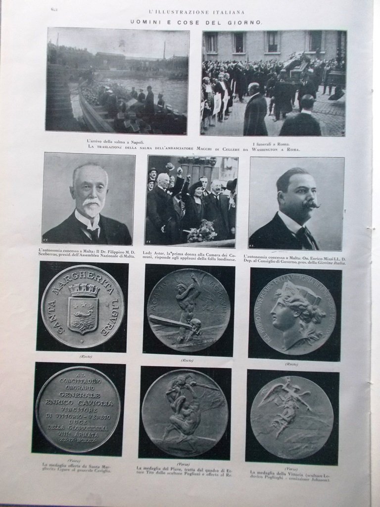 Uomini e cose del giorno: l'autonomia di Malta, la traslazione della salma dell'ambasciatore Macchi di Cellere, medaglie