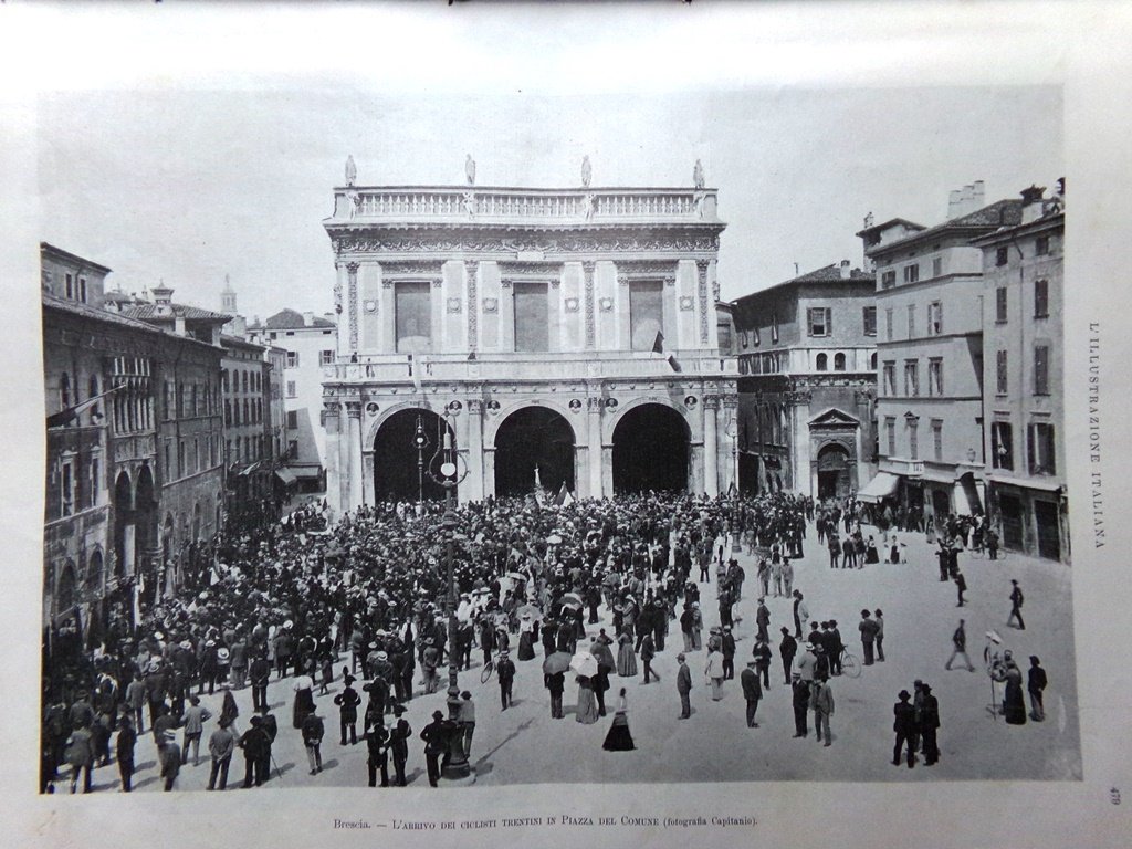 Brescia: l'arrivo dei ciclisti trenini in piazza del Comune