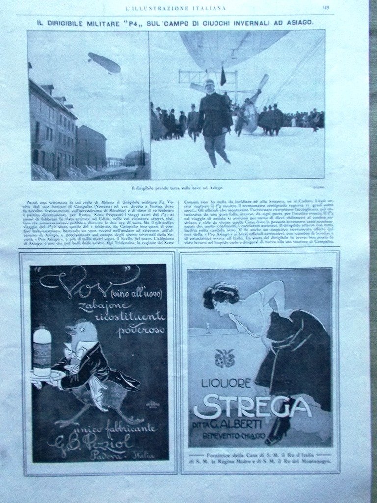 Il dirigibile militare P4 sul campo dei giochi invernali ad Asiago.