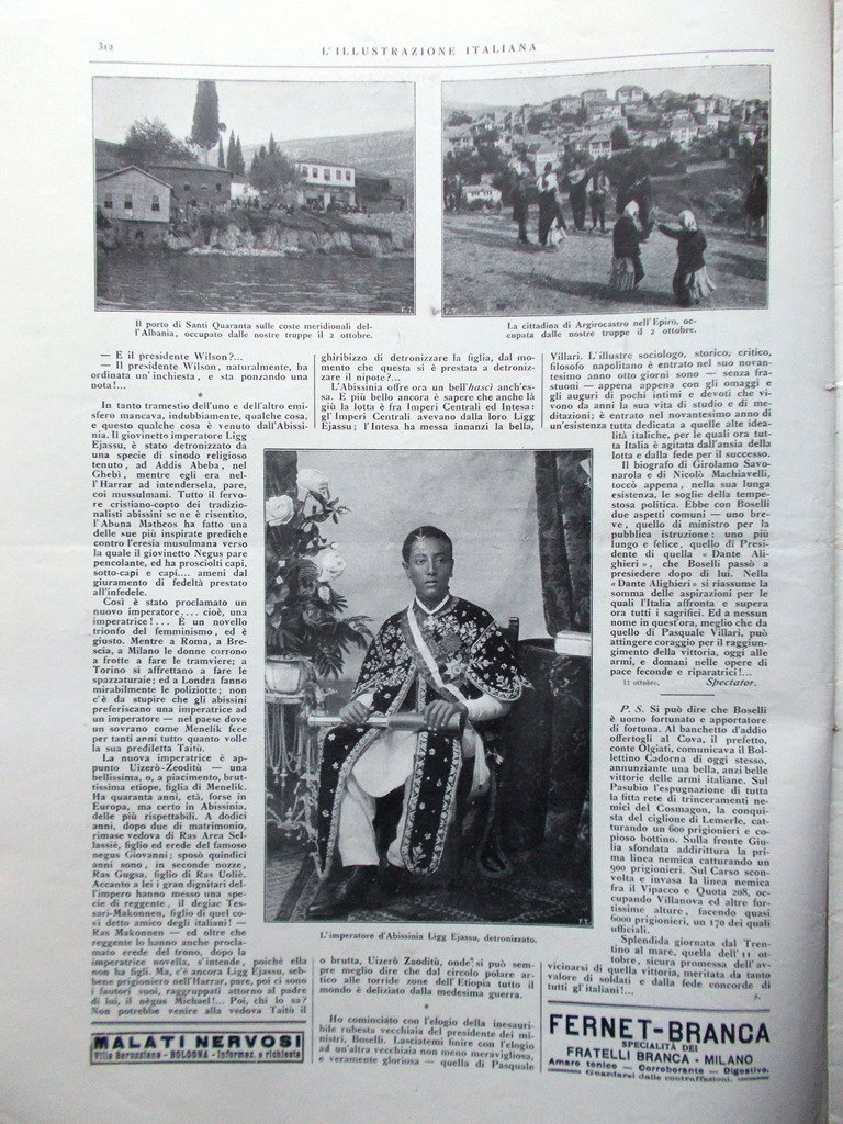 L'illustrazione Italiana 15 Ottobre 1916 WW1 Abissinia Venezia Gorizia Dolomiti