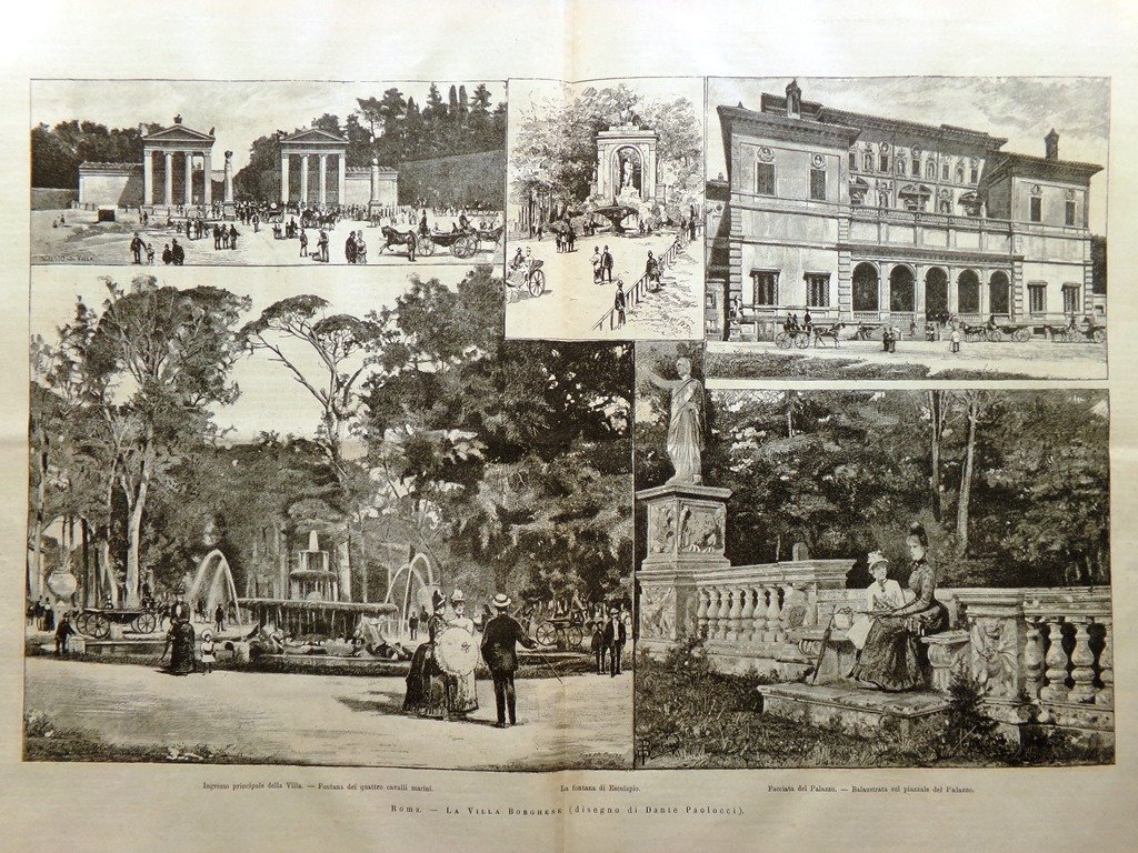 Villa Borghese (Stampa a 2 pagine di Dante Paolocci)