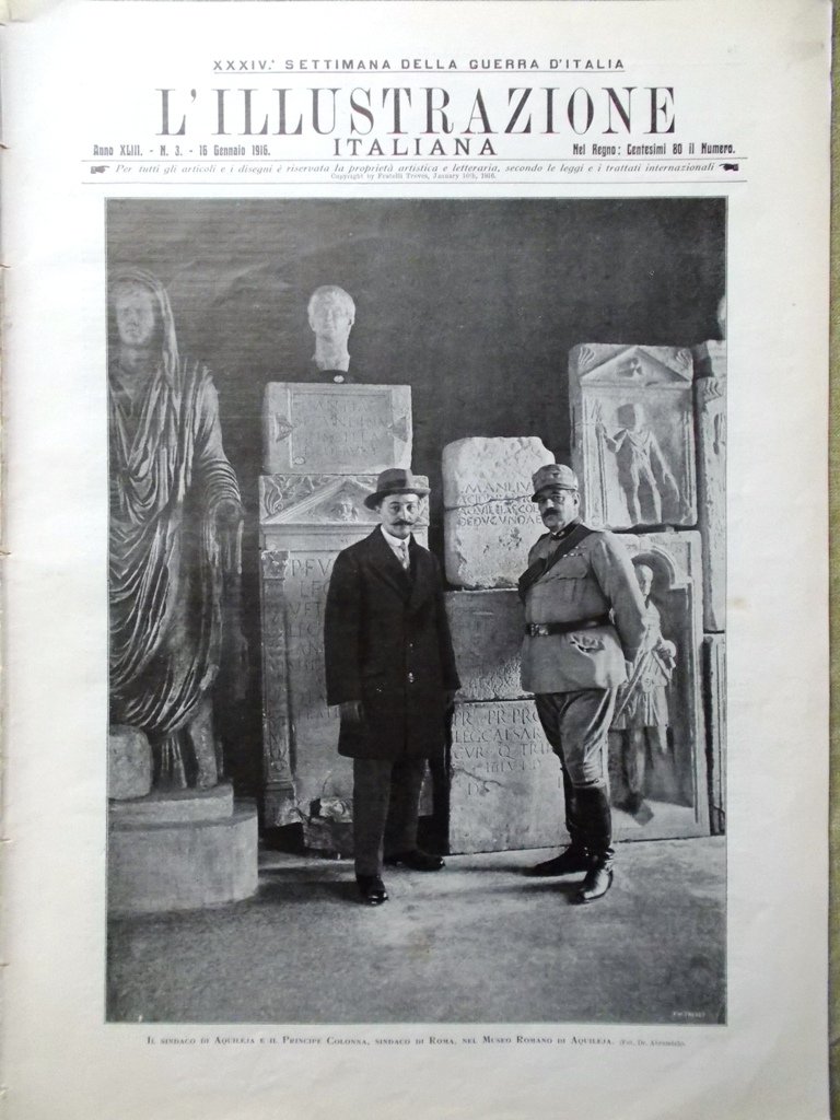 L'illustrazione Italiana 16 Gennaio 1916 WW1 Aquileia Dardanelli Isonzo Baccelli