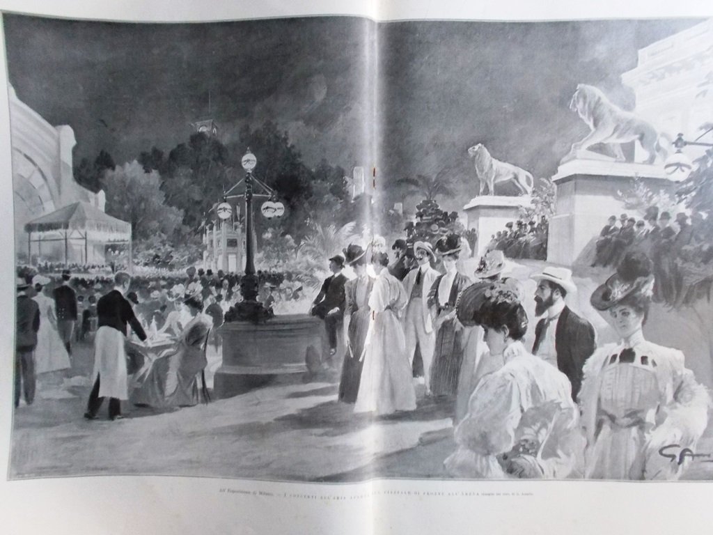 Esposizione di Milano: i concerti all'aria aperta sul piazzale di fronte all'arena (Stampa a 2 pagine) (G. Amato)