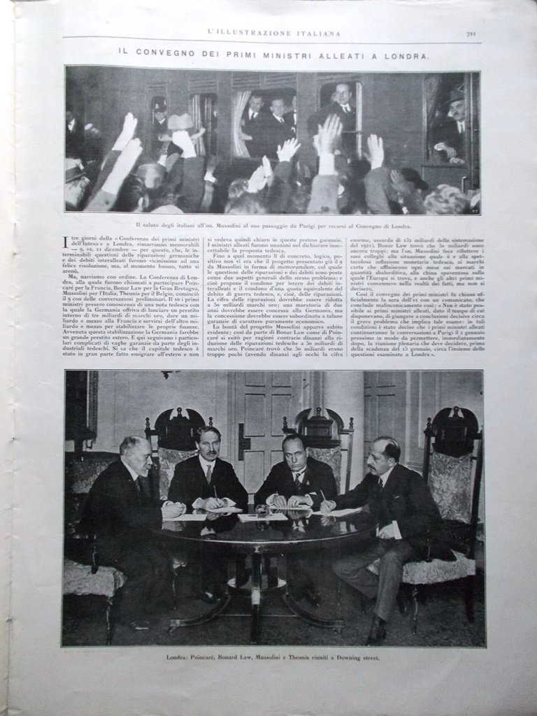 Il convegno dei primi ministri alleati a Londra: Poincaré, Bonard Law, Mussolini e Theunis