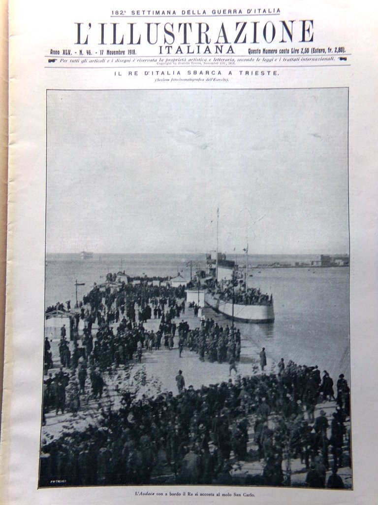 L'Illustrazione Italiana 17 Novembre 1918 WW1 Re a Trieste Trento Fiume Battisti