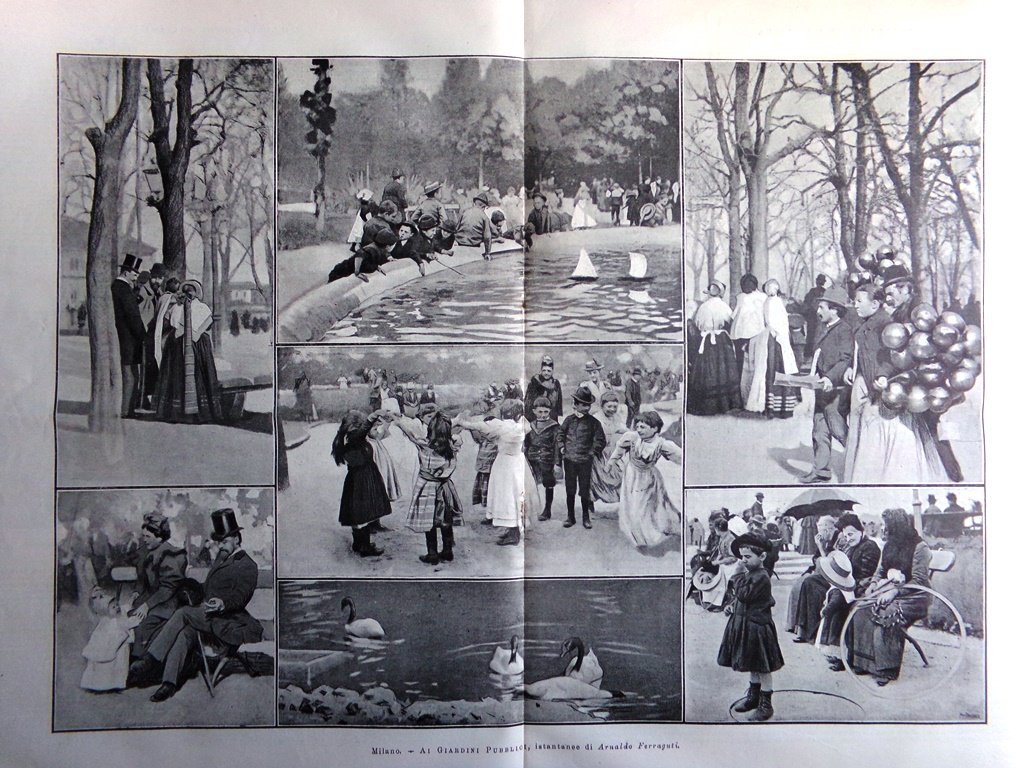 Milano: ai giardini pubblici (Arnaldo Ferraguti) (Stampa a 2 pagine)