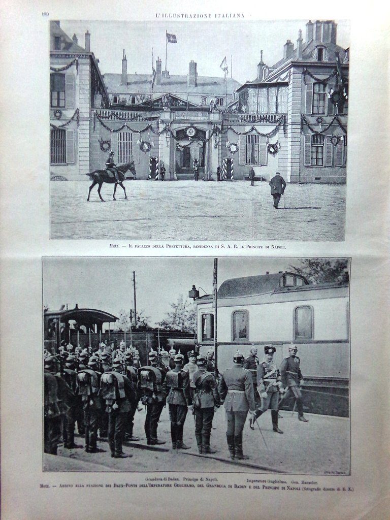 Metz: arrivo alla stazione dei Deux-Ponts dell'imperatore Guglielmo, del granduca di Baden e del principe di Napoli