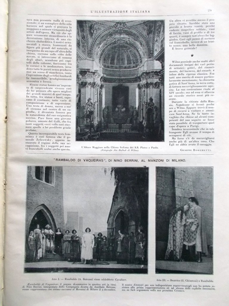 L'Illustrazione Italiana 18 Dicembre 1921 Manzoni Ojetti Rambaldo Berrini Wilna