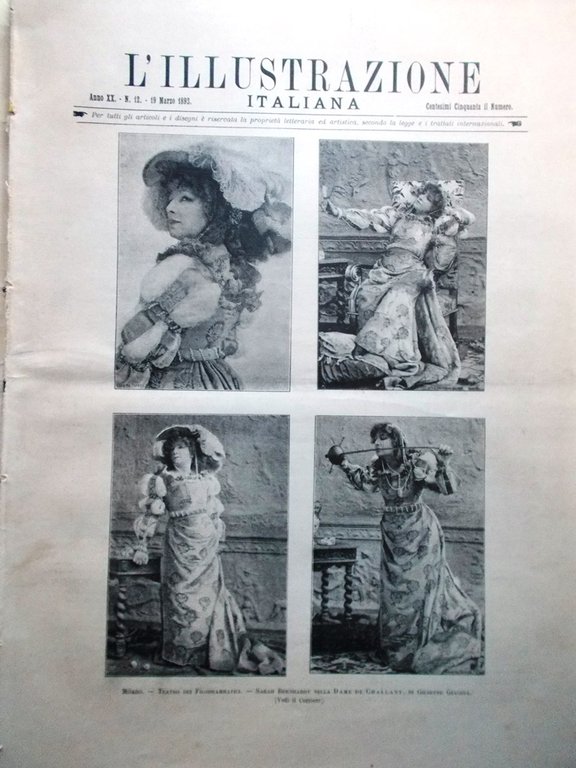 L'Illustrazione Italiana 19 Marzo 1893 Sarah Bernhardt Ippolito Taine Stra Villa