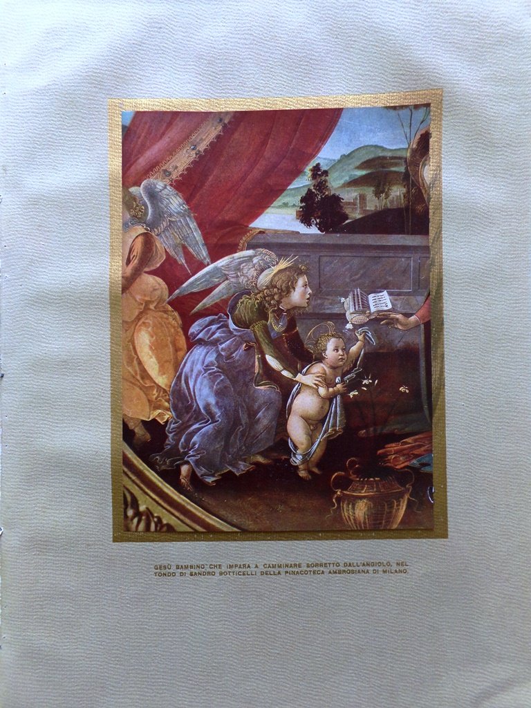 Gesù Bambino che scherza con un ramo di ciliege (stampa a colori su cartoncino)