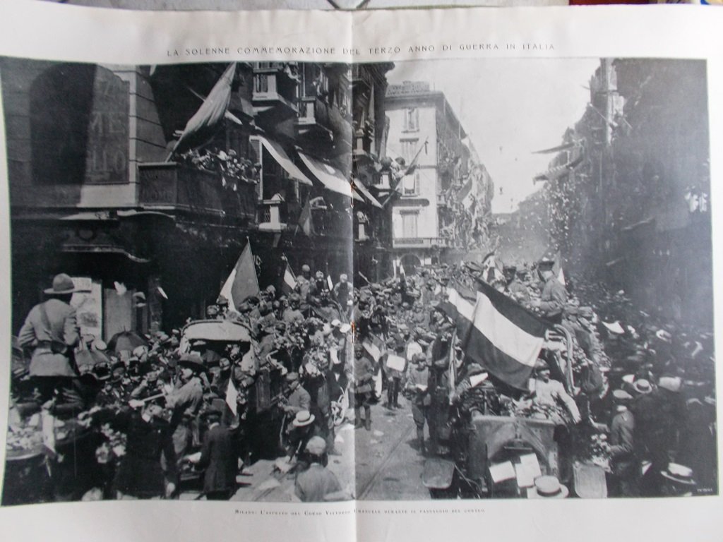 La solenne commemorazione del terzo anno di guerra in Italia: Milano il corteo in Piazza Cordusio (Bompard)