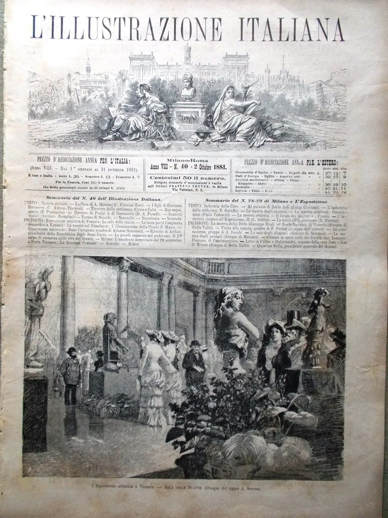 L'Illustrazione Italiana 2 Ottobre 1881 Manzoni Boccaccio Arthur Stazione Milano