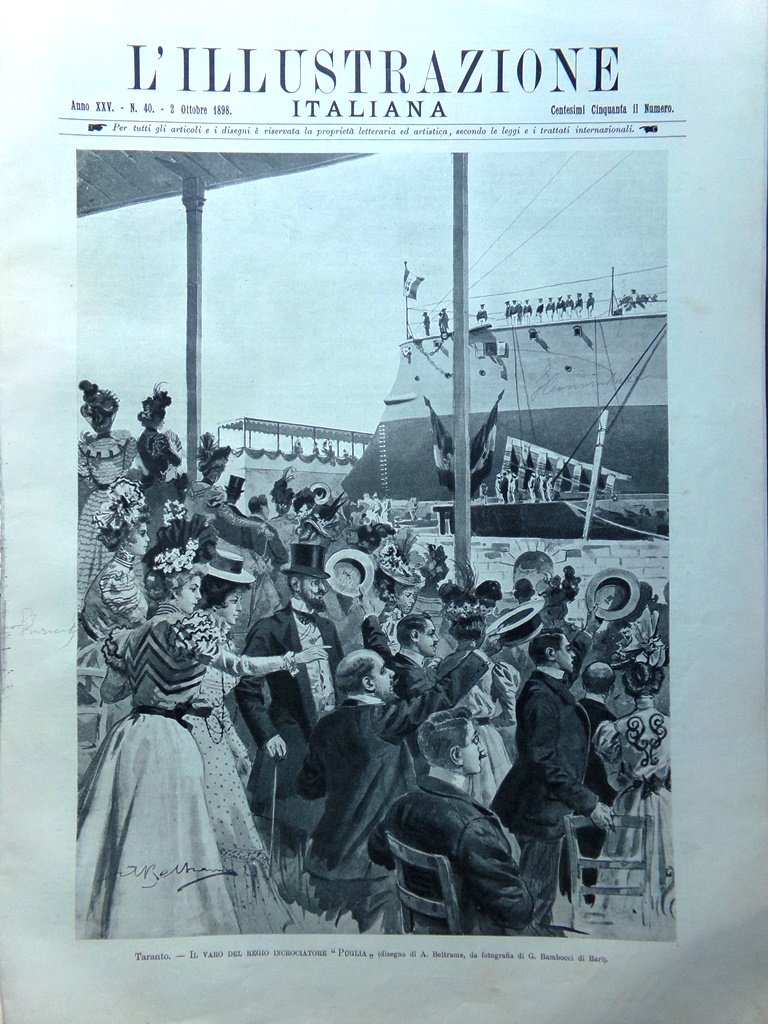 L'Illustrazione Italiana 2 Ottobre 1898 Varo Nave Puglia Taranto Cosenz Gavotti