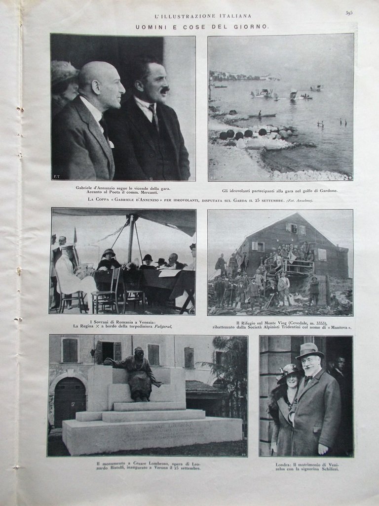 Uomini e cose del giorno: la coppa "Gabriele d'Annunzio" per idrovolanti disputata sul Garda, il monumento a Lombroso di Bistolfi