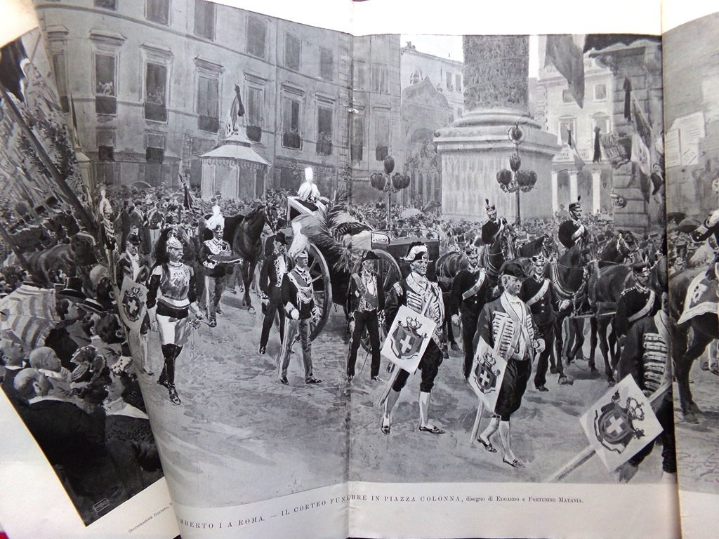I funerali di Umberto I a Roma: il corteo a piazza Colonna (E. e F. Matania) (stampa in 4 pagine ripiegate)