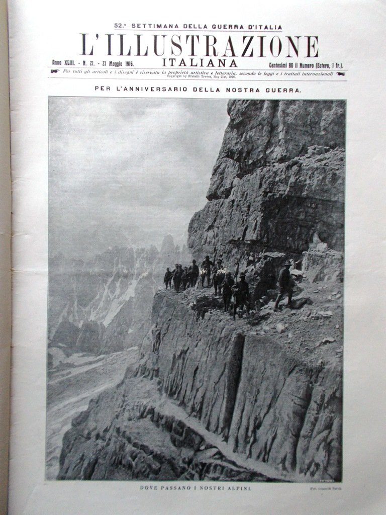 L'illustrazione Italiana 21 Maggio 1916 WW1 Adamello Cadorna Carso Scalfaro Selz