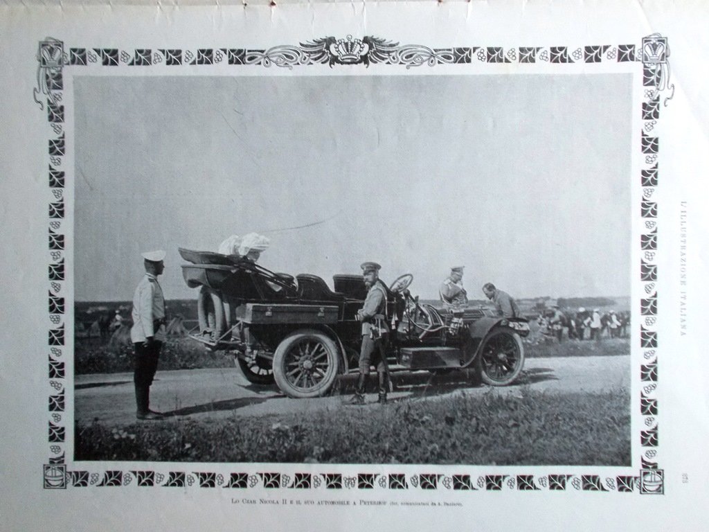 Lo zar Nicola II e il suo automobile a Pererhot