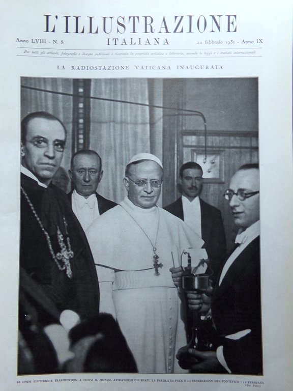 L'illustrazione Italiana 22 Febbraio 1931 Menotti Radio Vaticano Ungheria Cufra