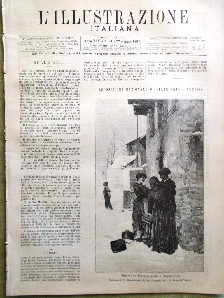 L'illustrazione Italiana 22 Maggio 1887 Margotti Cecchi Taranto Otello di Verdi