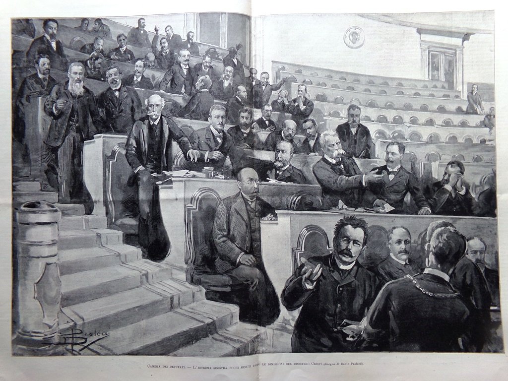 Camera dei deputati: l'estrema sinistra pochi minuti dopo le dimissioni del ministero Crispi (Dante Paolocci) (Stampa a 2 pagine).