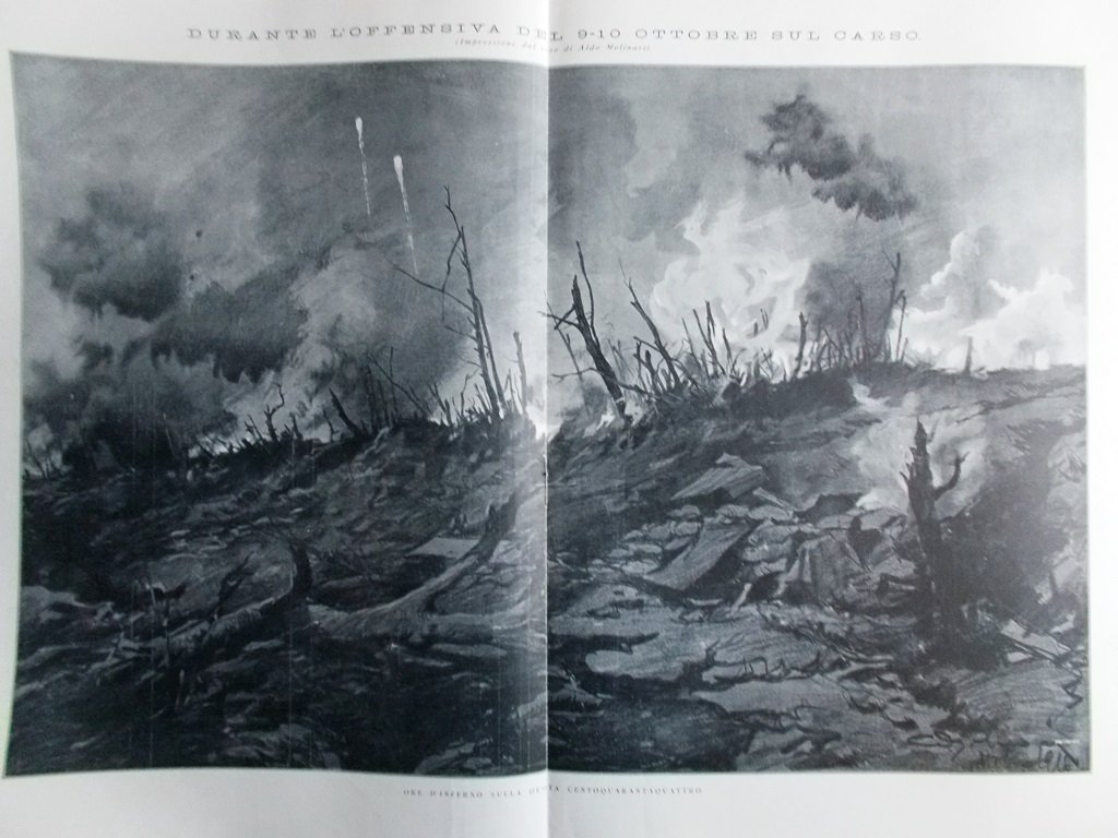 Durante l'offensiva del 9-10 ottobre sul Carso (Stampa a 2 pagine)