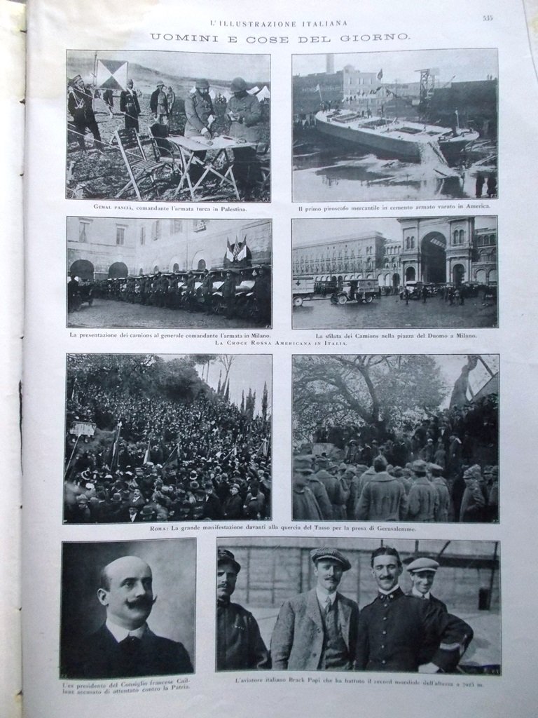 Uomini e cose del giorno: Gemal Pascià, la croce rossa americana in Italia, l'aviatore italiano Brack Papi che ha battuto il record mondiale di altezza.