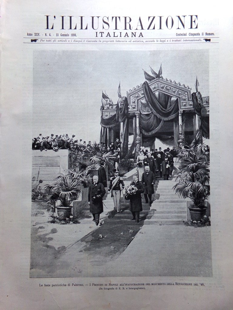 L'Illustrazione Italiana 23 Gennaio 1898 Feste Palermo Crispi D'Annunzio Bracco