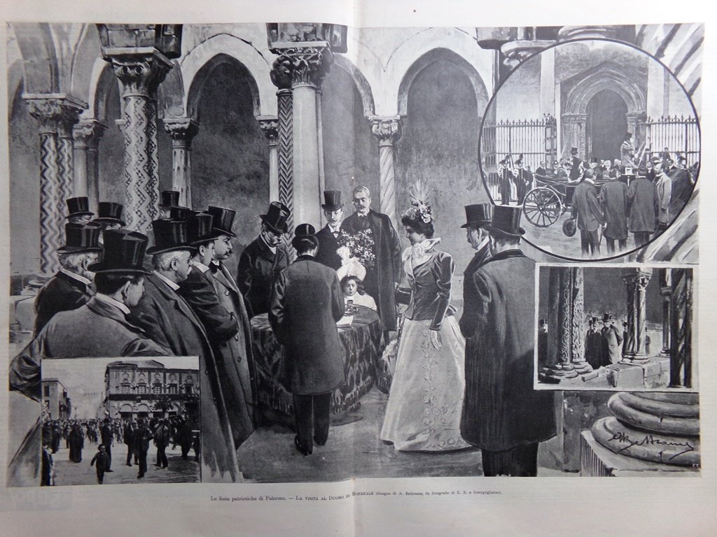 Le feste patriottiche di Palermo: la visita al duomo di Monreale (Achille Beltrame) (stampa in 2 pagine)