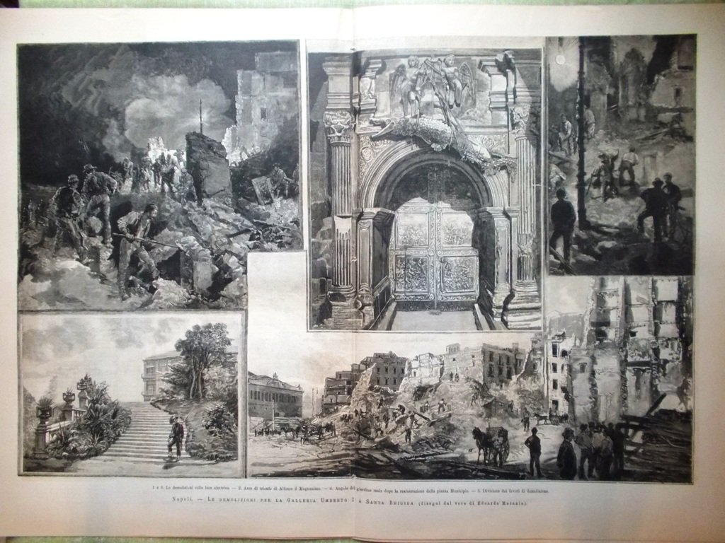 Napoli: le demolizioni per la galleria Umberto I a Santa Brigida (Matania) (Stampa a 2 pagine).